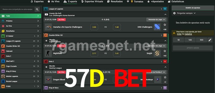O 57D Bet oferece uma grande seleção de opções de apostas em e-sports com probabilidades competitivas